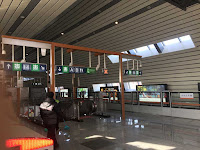 but the stations differentiate themselves by the colour of the metal columns and roof girders.